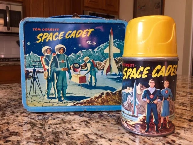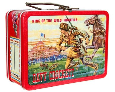Of course, there was also the metal lunch box, which was by far the most exciting thing for me. I loved Davy Crockett (which is why, to this day, I have an antique Davy Crockett lamp in my office) and anything having to do with outer space.